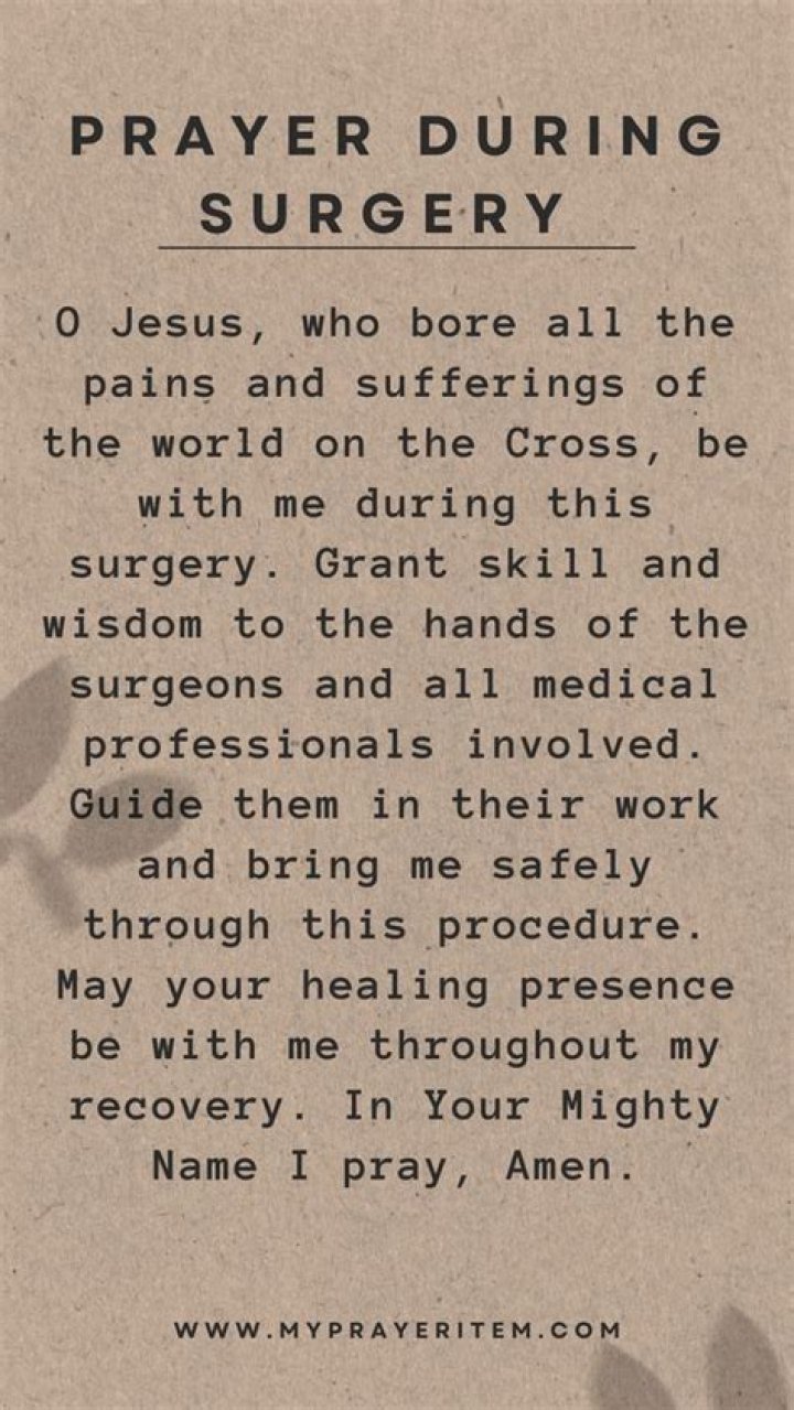 - Love: Prayer can be a way to express love and support for the person undergoing surgery.